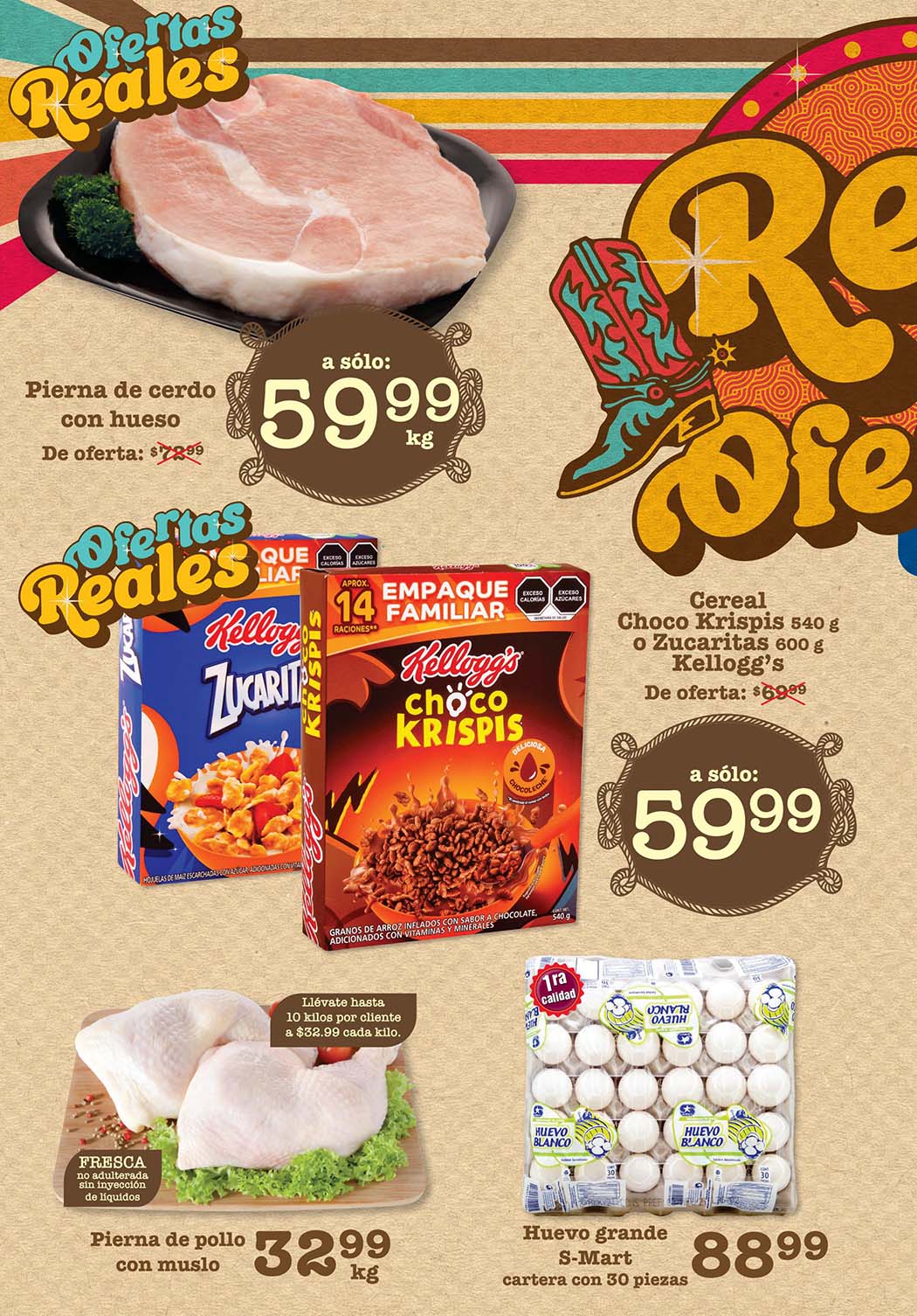 • Chamberete de res o chuleta ahumada de lomo de cerdo a $109.99 el kilo.