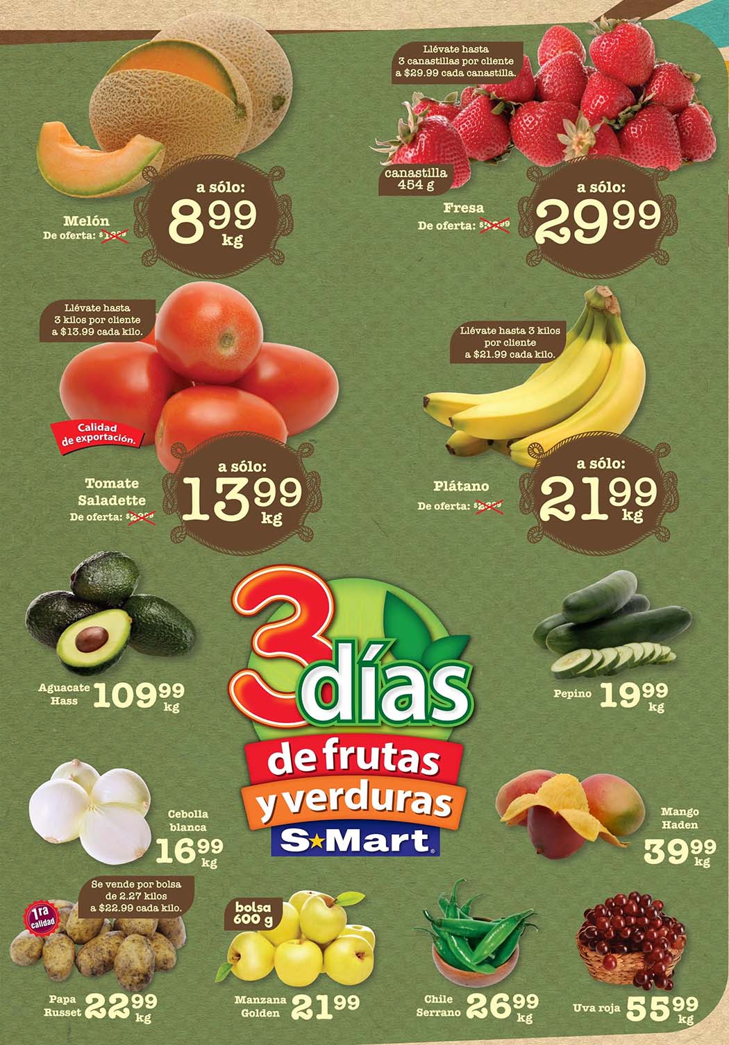 Ya salió el folleto “3 Días de Frutas y Verduras” de tiendas S-Mart con ofertas válidas del 10 al 12 de junio de 2025, en el que encontrarás precios especiales que puedes aprovechar para surtir tu despensa esta semana.