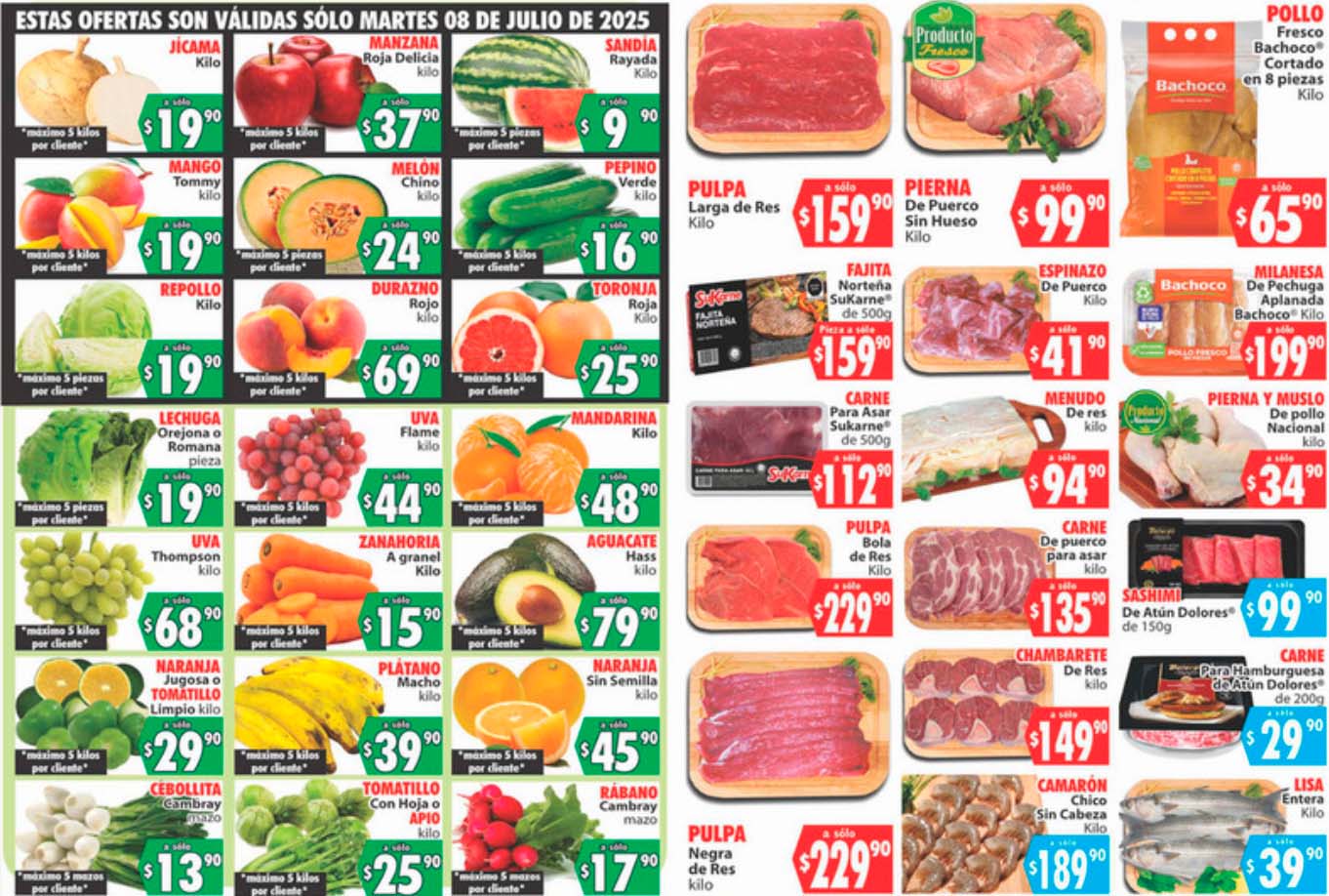 Folleto Casa Ley Frutas y verduras 8 y 9 de julio 2025