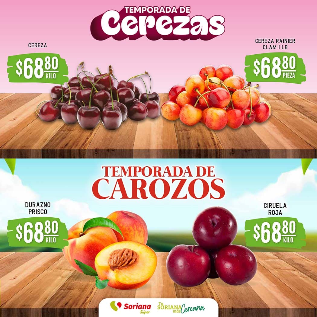 - Cereza a $68.80 el kilo.