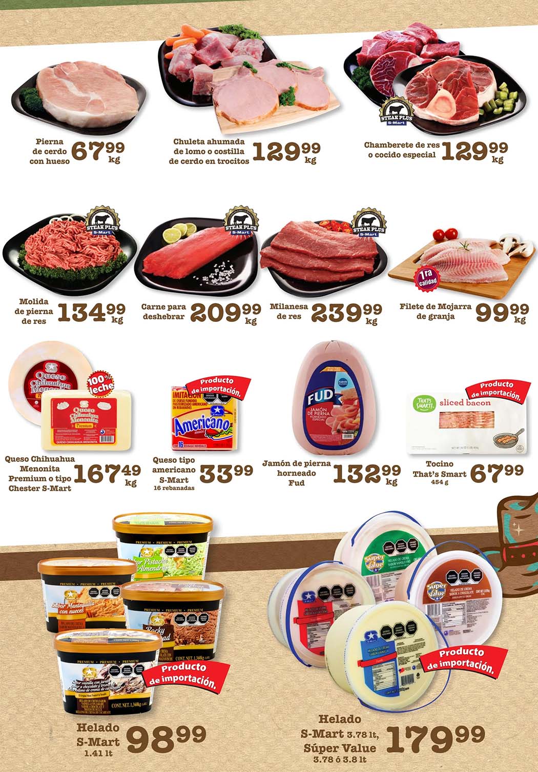 - Carne Molida de res a $134.99 el kilo.