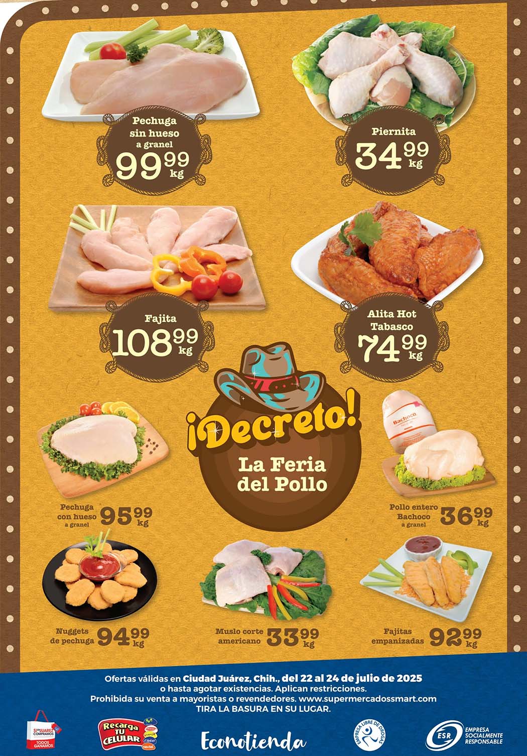 - Pechuga sin hueso a granel a $99.99 el kilo.