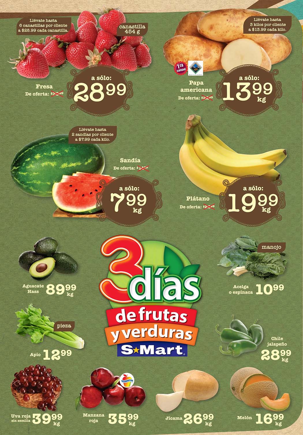 Acaba de salir el folleto de S-Mart “3 Días de Frutas y Verduras”, que contiene ofertas válidas del 22 al 24 de julio 2025, en el que encontrarás precios especiales que puedes aprovechar para surtir tu despensa esta semana, te comparto la lista de precios.