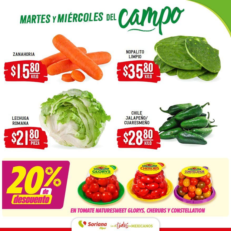 El Martes y Miércoles del Campo de Soriana los días 22 y 23 de julio de 2025 tendrán las siguientes ofertas en frutas y verduras que aplican en tiendas Soriana Híper participantes de la República Mexicana. Les comparto la lista completa de precios, para que compares y ahorres varios pesos por tus compras.
