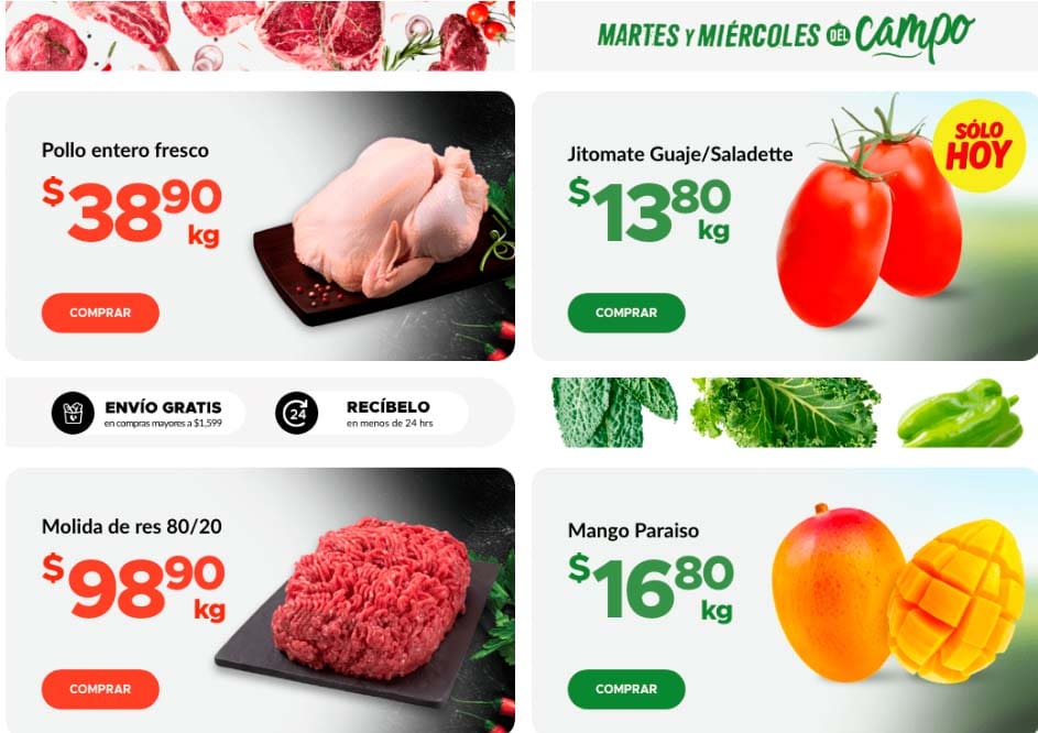 - Carne Molida de res 80/20 a $99.90 el kilo.
