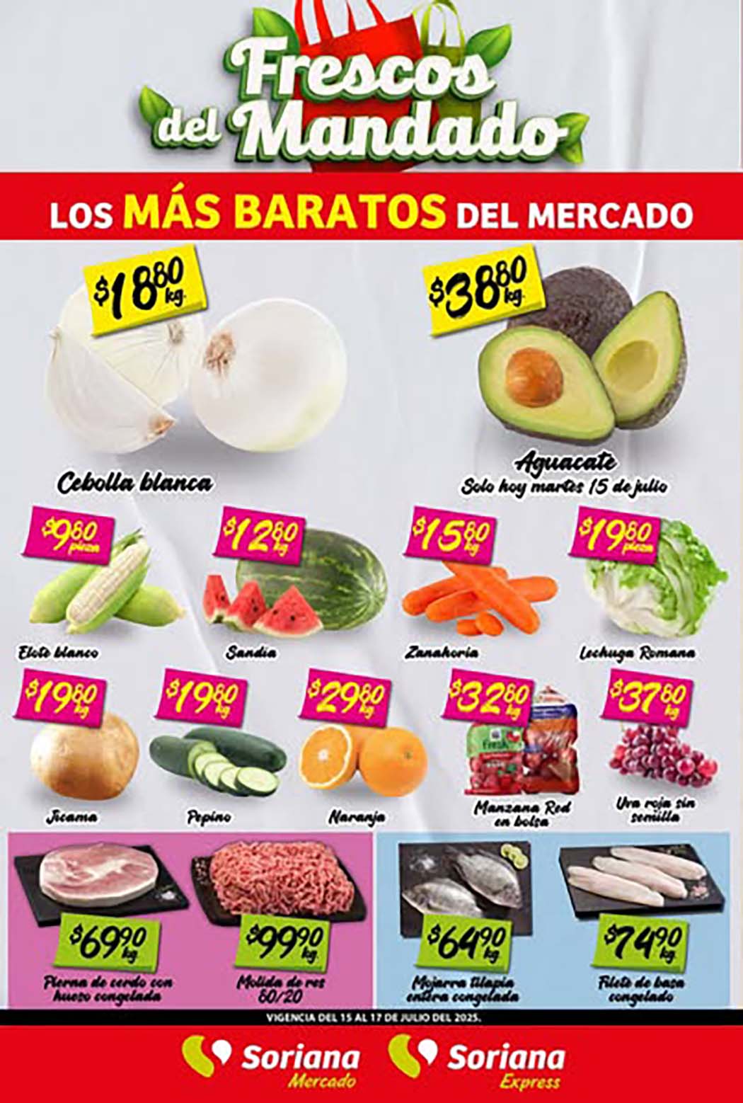 Ya salió el Folleto de Soriana Mercado y Express Los Frescos del Mandado con las siguientes ofertas en frutas y verduras válidas del 15 al 17 de julio 2025, donde encontraras descuentos y precios especiales toda la semana.