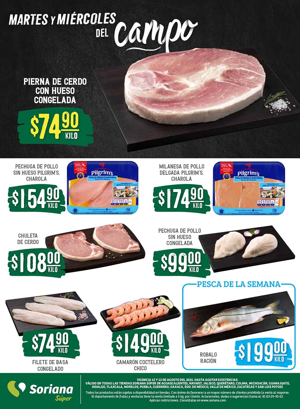Las tiendas Soriana Súper en su Martes y Miércoles del Campo ofrecen las siguientes ofertas en carnes, frutas y verduras válidas los días 12 y 13 de agosto de 2025, en el que encontrarás precios especiales en sucursales participantes. Les comparto la lista completa de precios para que surtas tu despensa y ahorres varios pesos.