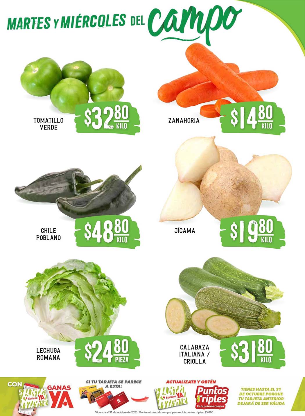 Ofertas del Folleto Soriana Súper en frutas y verduras (Los precios pueden variar en cada tienda o por ciudad):