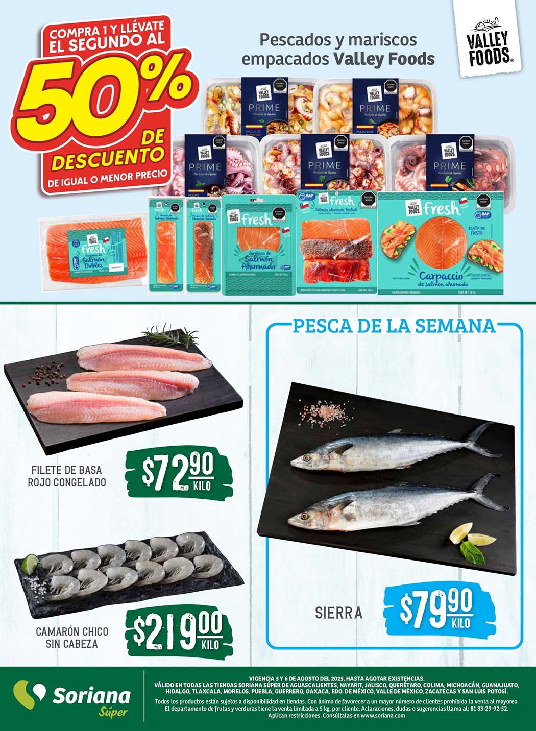 - Compra uno y lleva el segundo al 50% de descuento en Pescados y mariscos empacados Valley Foods