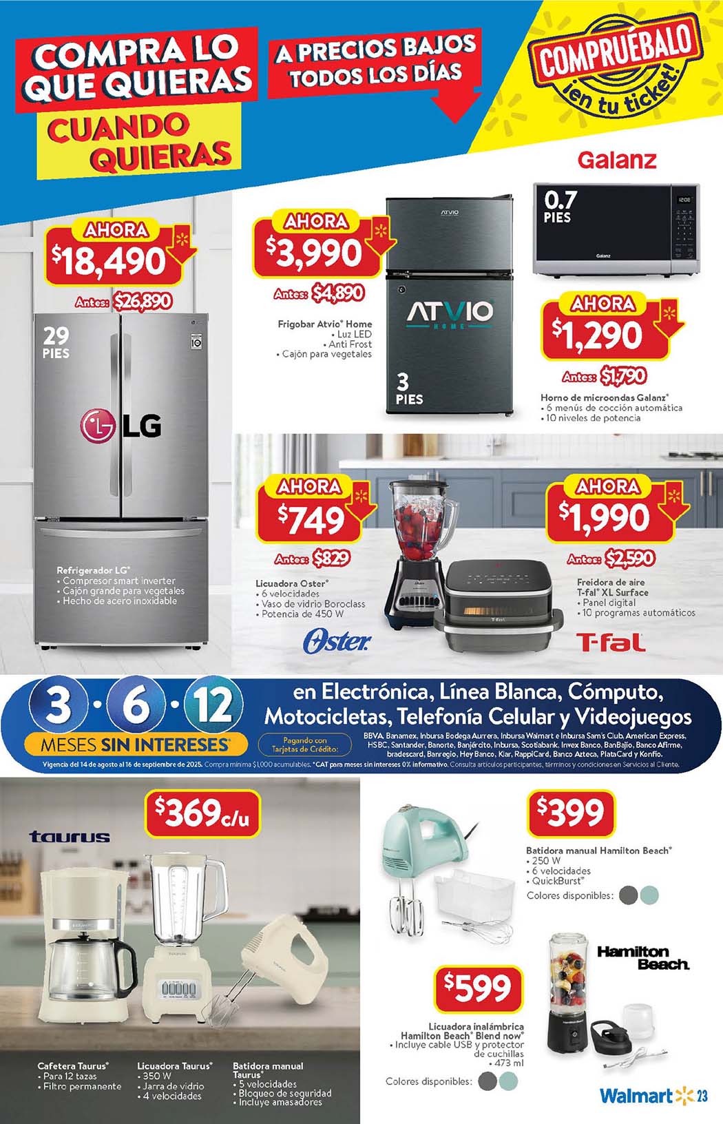Les comparto el nuevo folleto de Walmart Compra lo que Quieras Cuando Quieras vigente del 14 de agosto al 16 de septiembre de 2025, donde encontraras descuentos y precios especiales en productos seleccionados de abarrotes, alimentos, hogar, cuidado personal, mascotas, farmacia, ropa, línea blanca, autos y más.