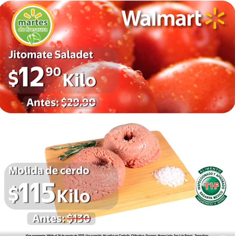 Ofertas Martes de Frescura en Walmart válidas a nivel Nacional (No aplica en los estados de Nuevo León, Coahuila, Chihuahua, Tamaulipas, Durango ni San Luis Potosí):