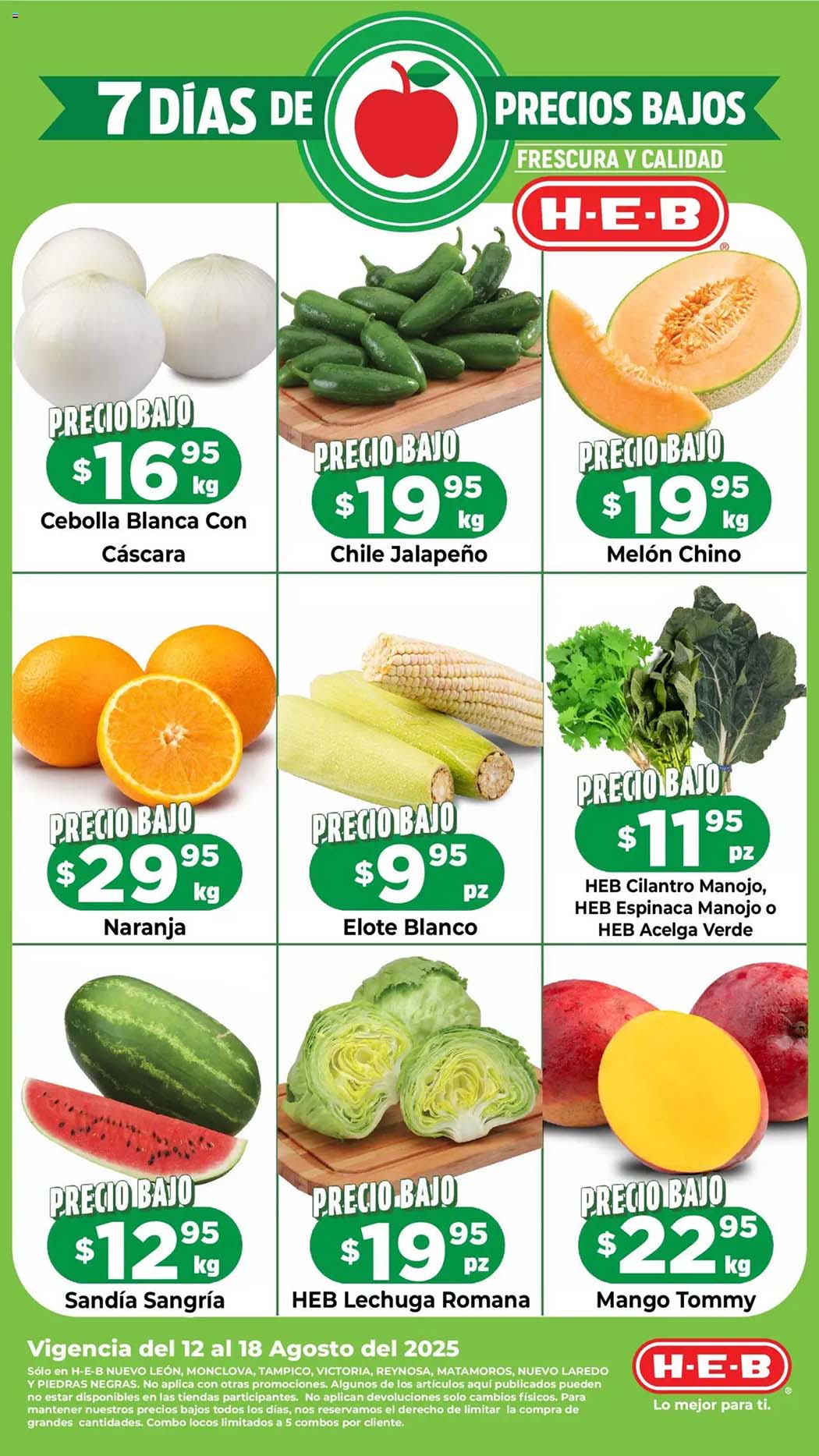 Ofertas HEB frutas y verduras del 12 al 18 de agosto 2025