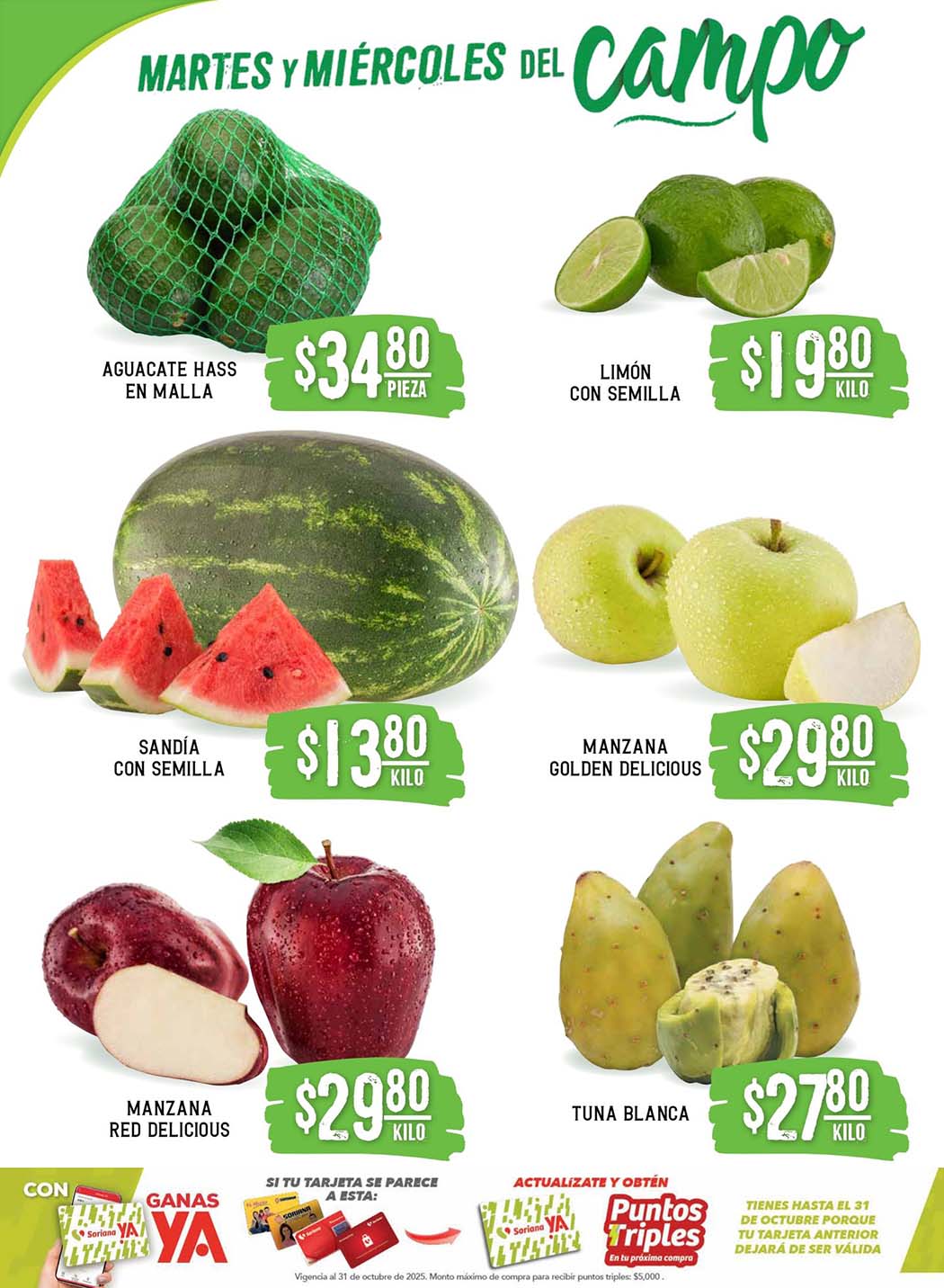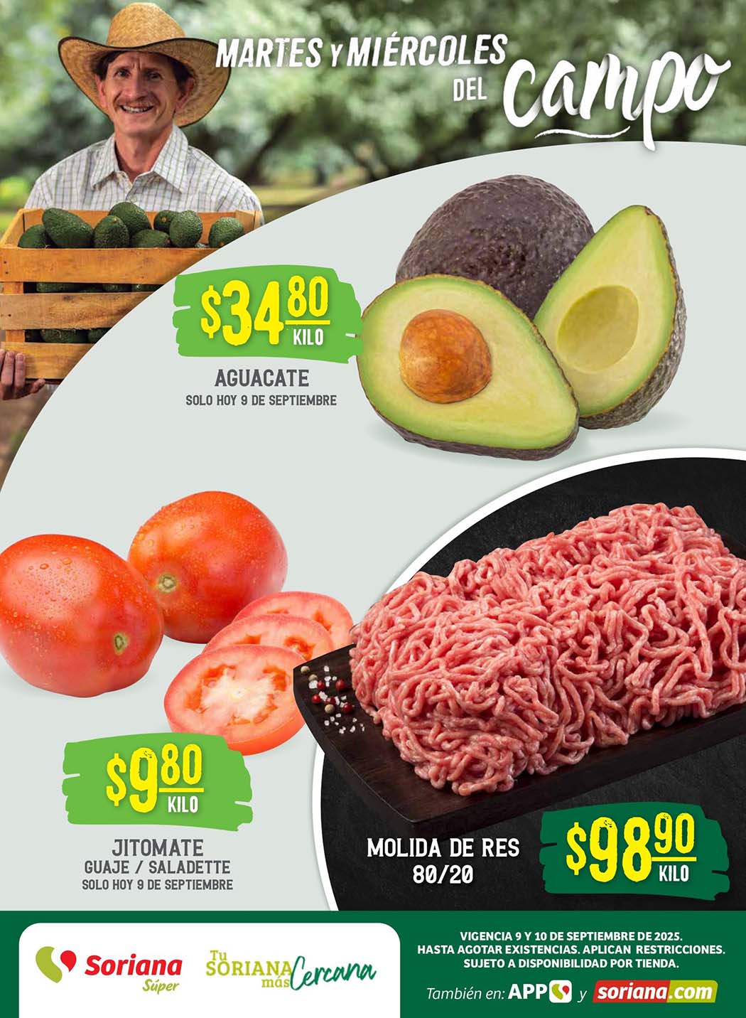 Te comparto el folleto Martes y Miércoles del Campo de Soriana Súper con las siguientes ofertas en frutas y verduras válidas el 23 y 24 de septiembre de 2025. Aqui puedes ver la lista completa de precios especiales en sucursales Soriana Super participantes de La República Mexicana. Aquí puedes ver la lista completa de precios para que surtas tu despensa y ahorres varios pesos.