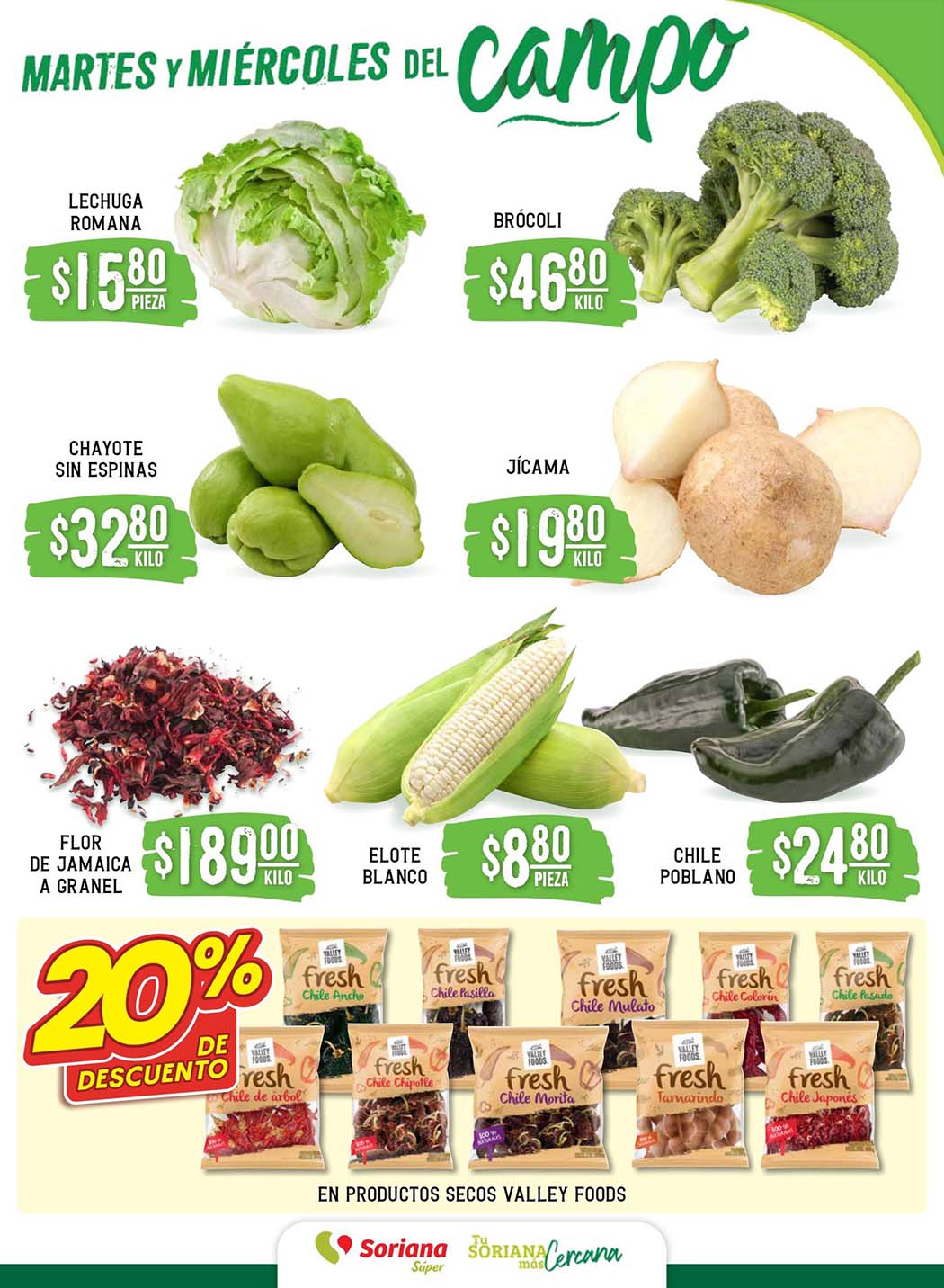 Ofertas del folleto Soriana Súper en frutas y verduras (Los precios pueden variar en cada tienda o por ciudad):