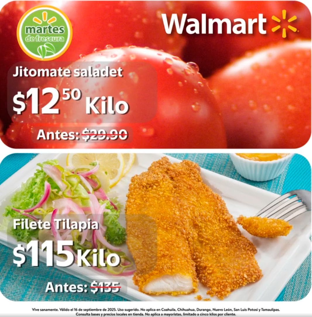 Ofertas Martes de Frescura en Walmart válidas a nivel Nacional (No aplica en los estados de Nuevo León, Coahuila, Chihuahua, Tamaulipas, Durango ni San Luis Potosí):