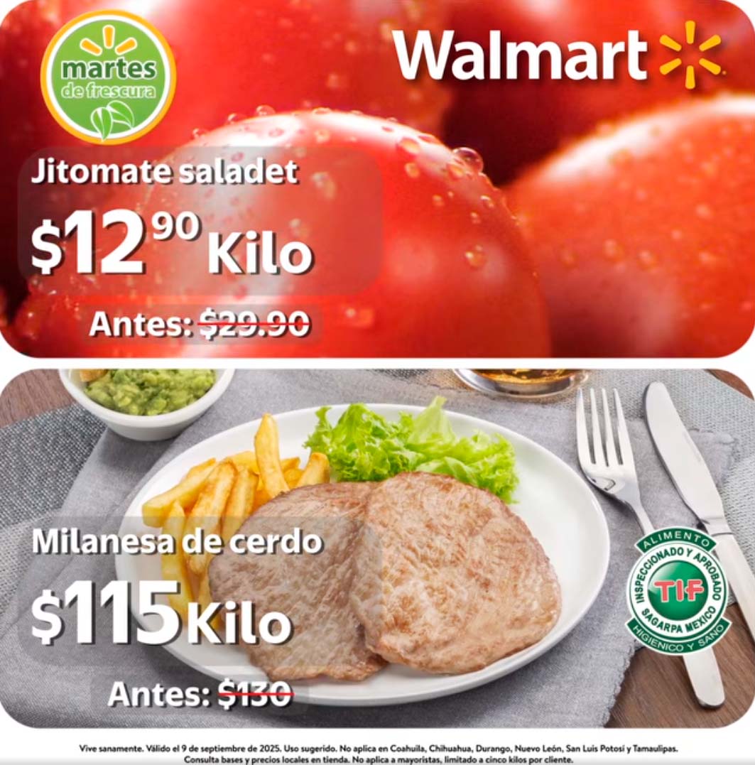 Ofertas Martes de Frescura en Walmart válidas a nivel Nacional (No aplica en los estados de Nuevo León, Coahuila, Chihuahua, Tamaulipas, Durango ni San Luis Potosí):