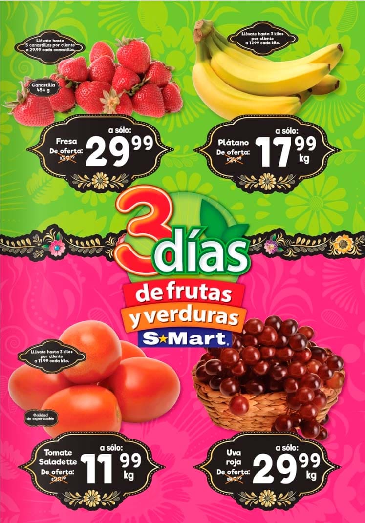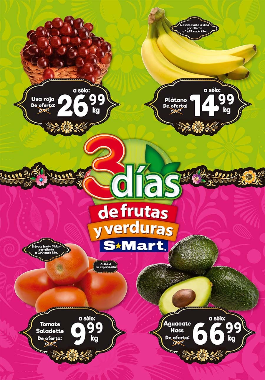 Ofertas S-Mart frutas y verduras del 2 al 4 de septiembre 2025