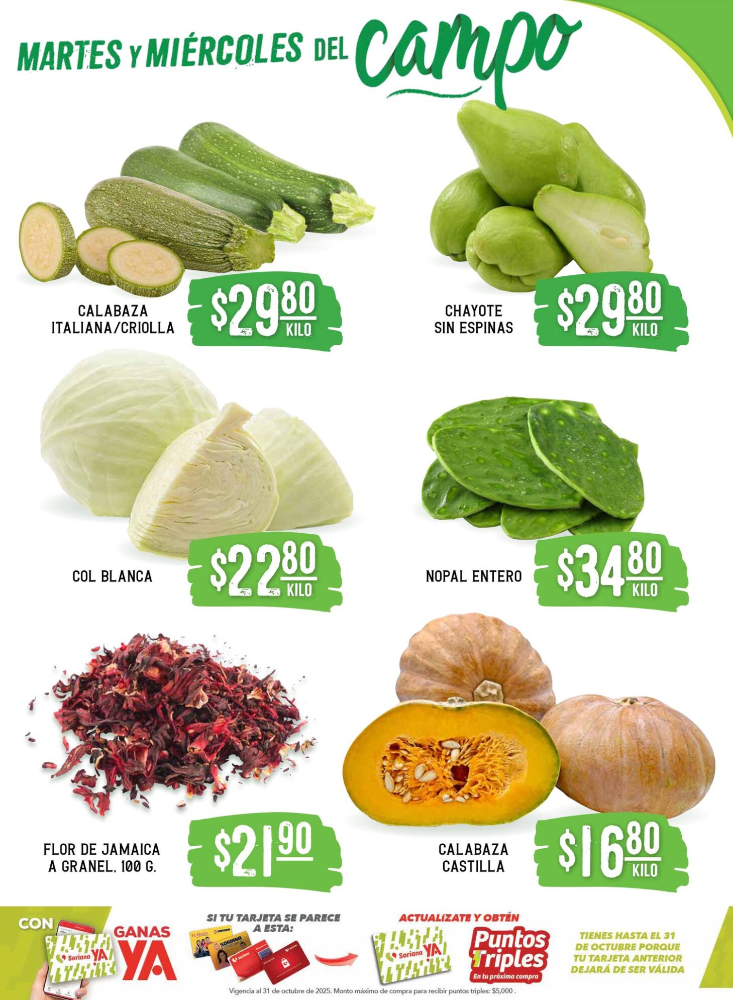 Ya salió el folleto Martes y Miércoles del Campo de Soriana Súper, que contiene ofertas en frutas y verduras válidas los días 28 y 29 de octubre 2025. Te comparto la lista completa de precios especiales que aplican en sucursales Soriana Super participantes de La República Mexicana.