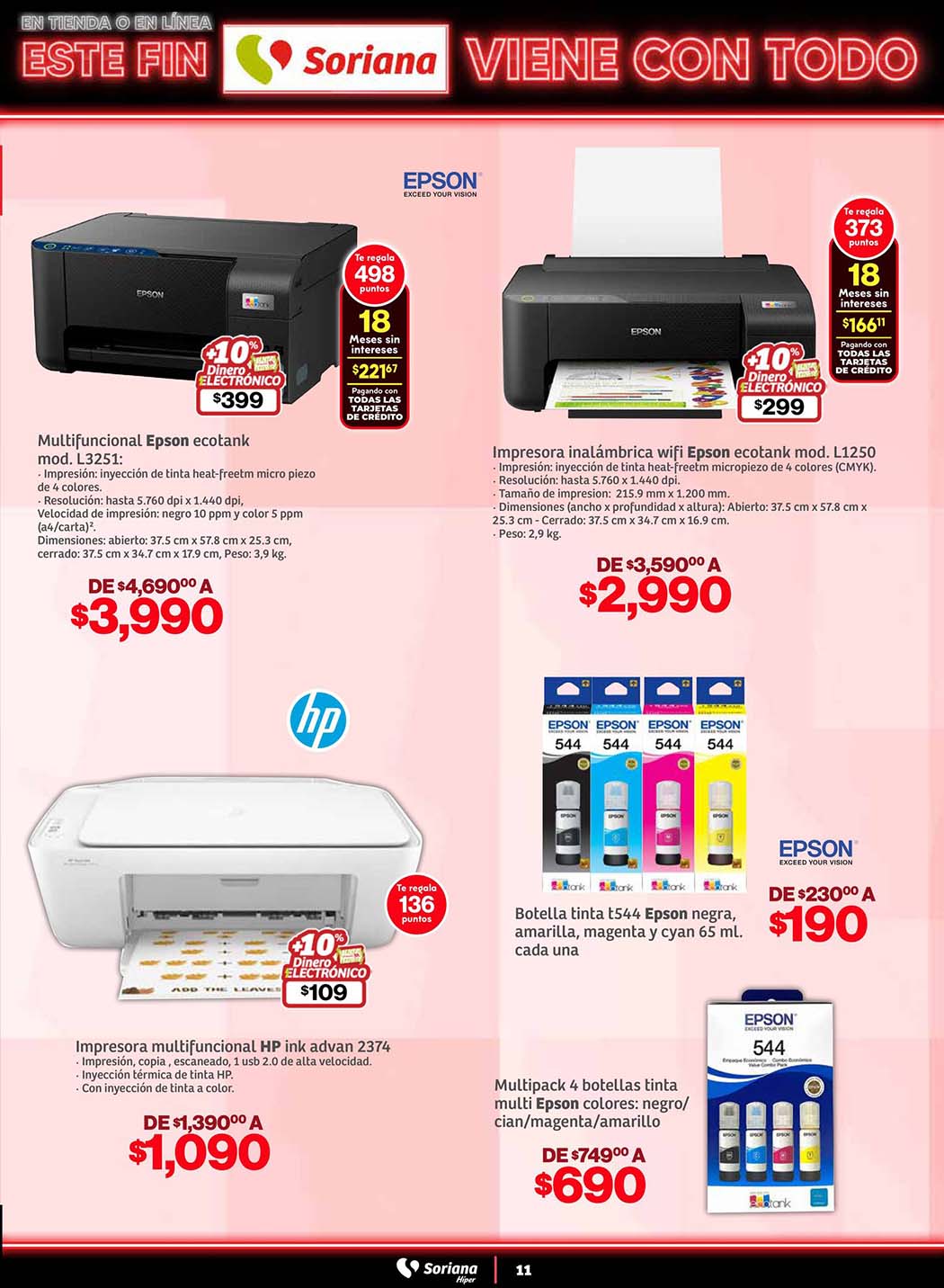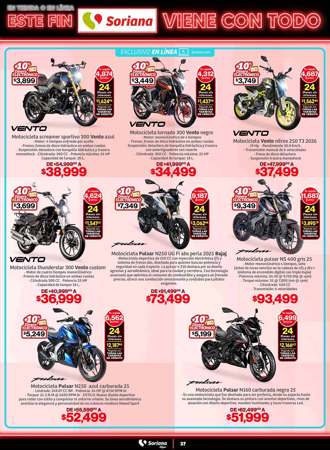 - 10% en Dinero electrónico Soriana Ya, al comprar productos del folleto