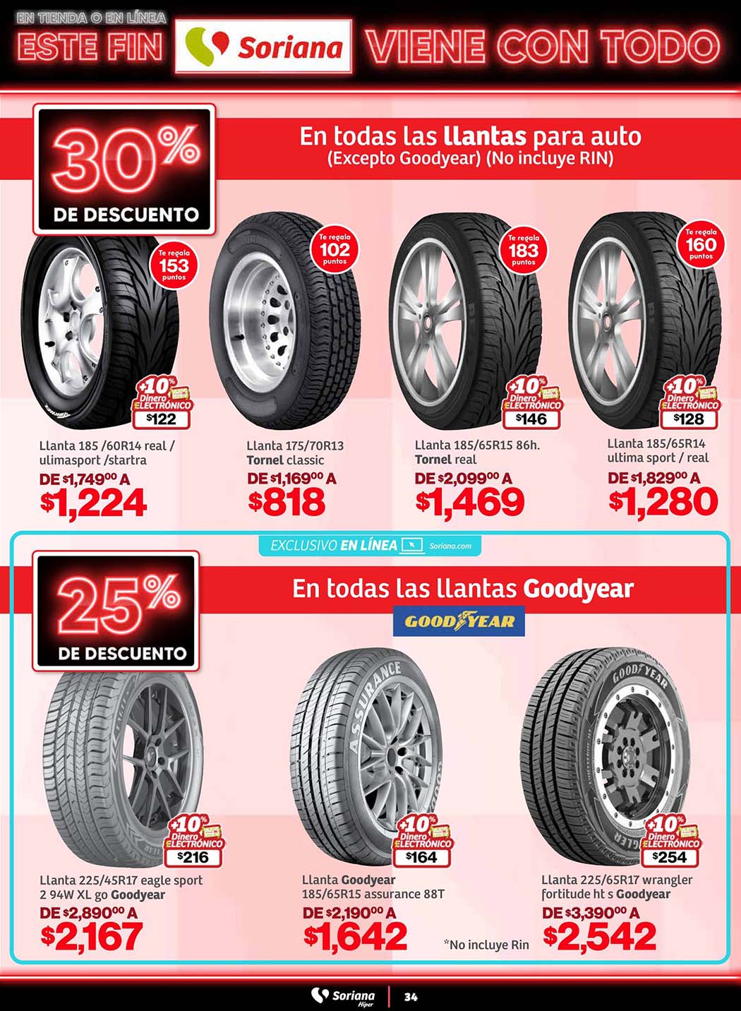 - 30% de descuento en Todas las Llantas para Auto (excepto Goodyear; no incluye Rin)