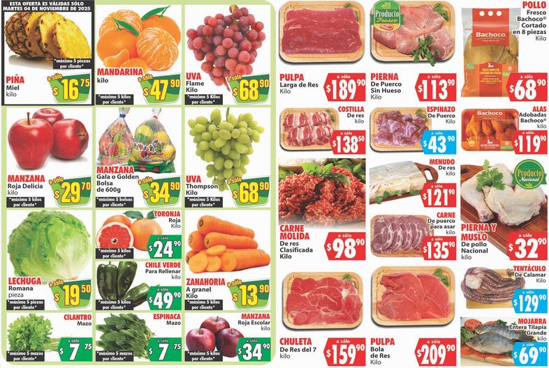Ya salió el folleto de tiendas Casa Ley con las siguientes ofertas en frutas y verduras válidas los días Martes 4 y Miércoles 5 de noviembre 2025, donde encontrarás precios bajos en productos seleccionados que aplican en sucursales participantes.