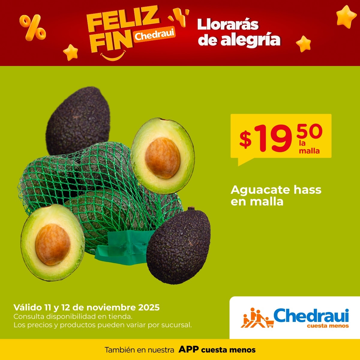 - Aguacate hass en malla a $19.50 el paquete.