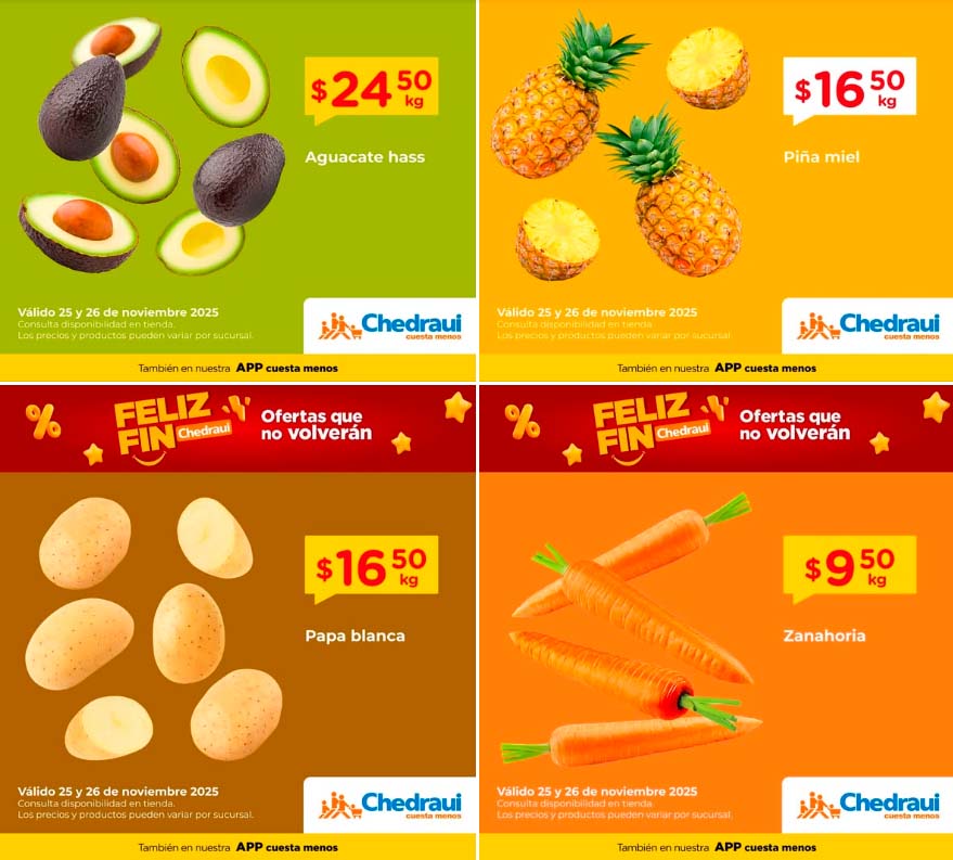 Les comparto las ofertas del Martimiércoles Chedraui de frutas y verduras para esta semana válida los días martes 25 y miércoles 26 de noviembre de 2025, donde encontrarás precios especiales en sucursales participantes. Les comparto la lista completa de precios para que ahorres varios pesos por tus compras de supermercado.