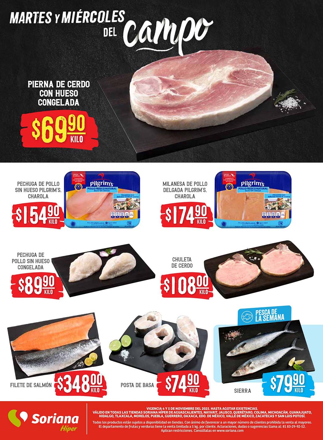El Martes y Miércoles del Campo de Soriana tiene preparadas las siguientes ofertas de carnes, frutas y verduras válidas los días 4 y 5 de noviembre de 2025 que aplican en tiendas Soriana Híper participantes de la República Mexicana. Te comparto la lista de precios, para que compares y ahorres varios pesos por tus compras.