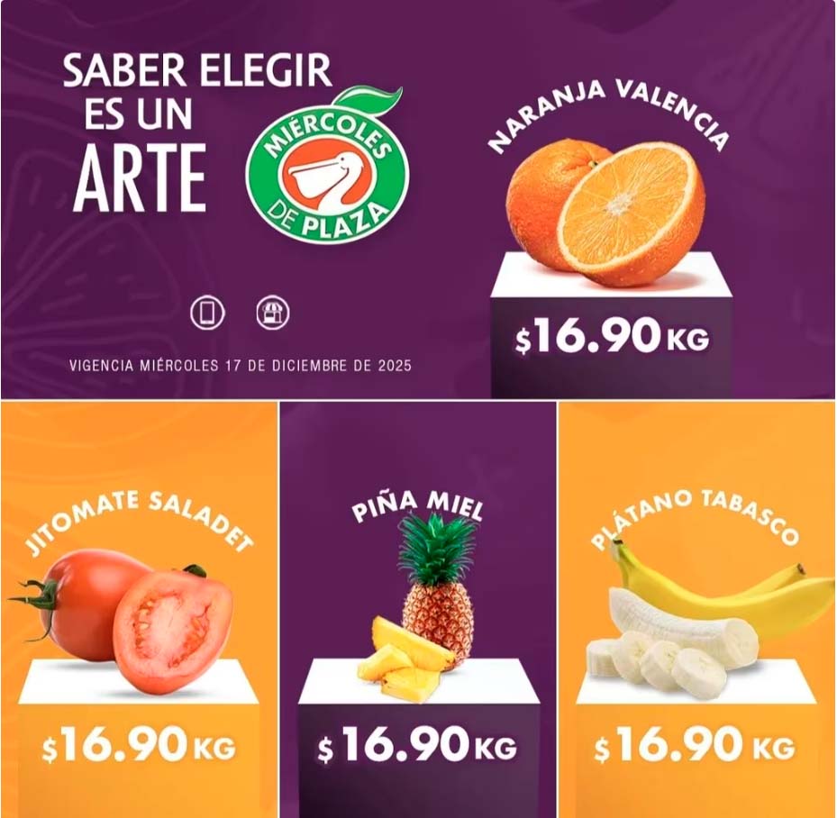 El Miércoles de Plaza de la Comer y Fresko tiene preparadas las siguientes ofertas de frutas y verduras válidas para el día 17 de diciembre de 2025 que aplican en tiendas La Comer y Fresko de La República Mexicana. Además puedes hacer tus pedido a través de su tienda en línea lacomer.com.mx.