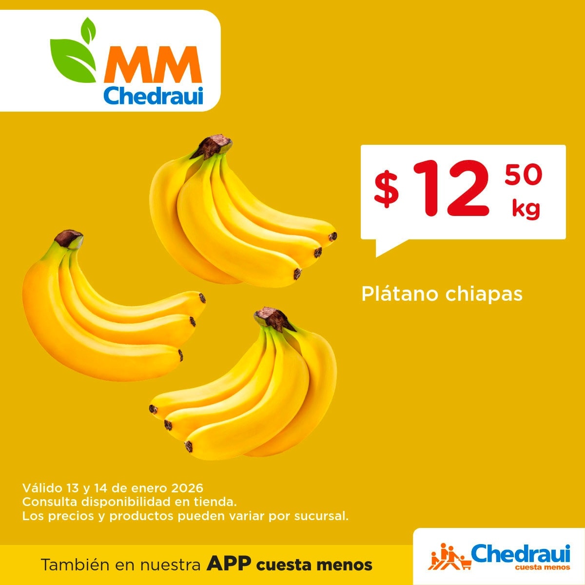 - Plátano Chiapas a $12.50 el kilo.