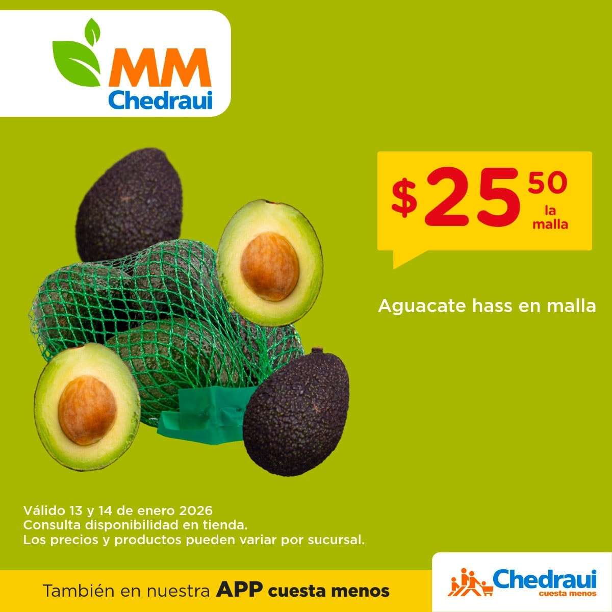 - Aguacate hass en malla a $24.50 el paquete.