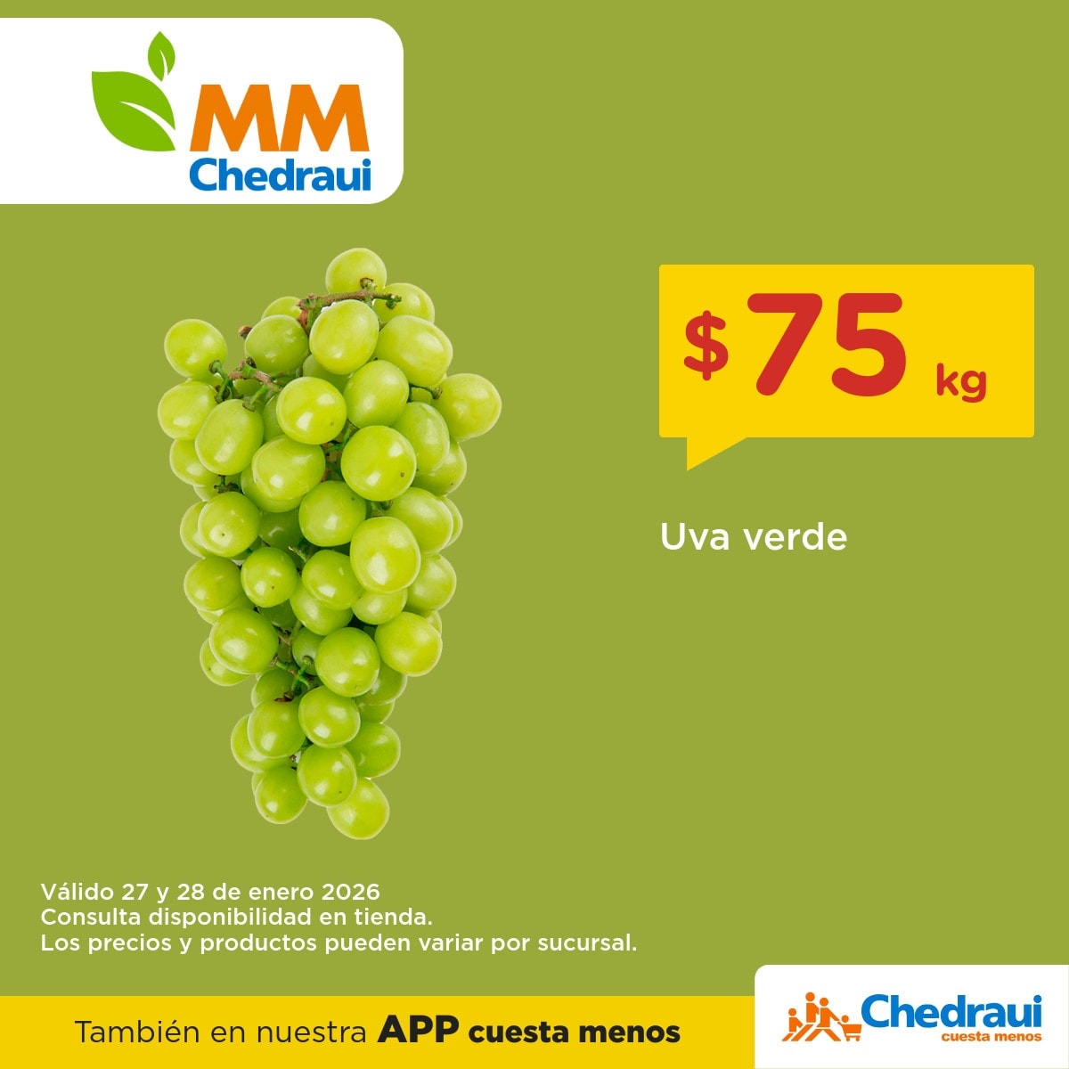 - Uva verde a $75.00 el kilo.
