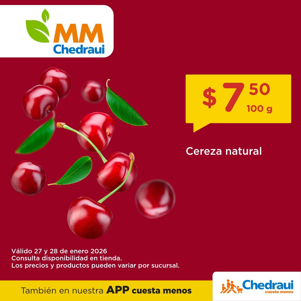 - Cereza natural a $7.50 los 100 g.