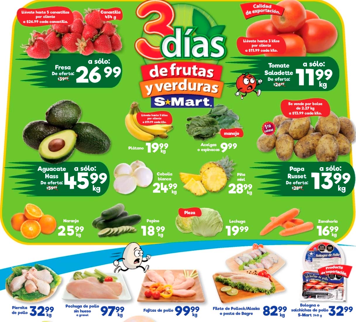 Acabo de ver el folleto de S-Mart “3 Días de Frutas y Verduras”, que contiene ofertas con precios válidos del 20 al 22 de enero 2026, donde encontrarás precios especiales que puedes aprovechar para surtir tu despensa.