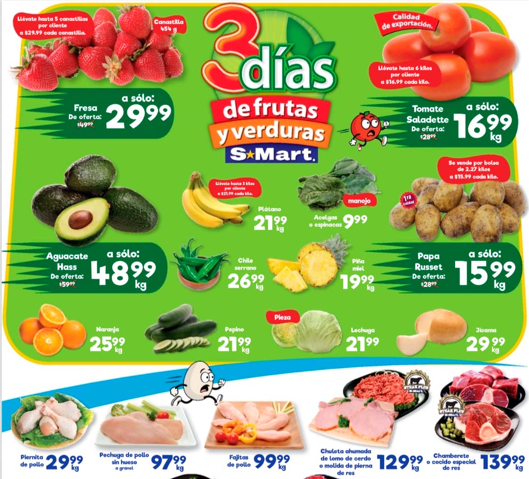 Acaba de salir el folleto de S-Mart “3 Días de Frutas y Verduras”, que contiene ofertas con precios especiales del 27 al 29 de enero 2026, donde encontrarás precios especiales que puedes aprovechar para surtir tu despensa.