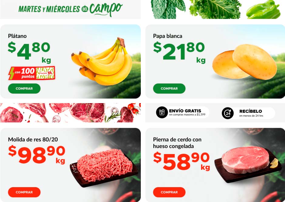 - Plátano a $4.80 el kilo con 100 Puntos Soriana Ya.
