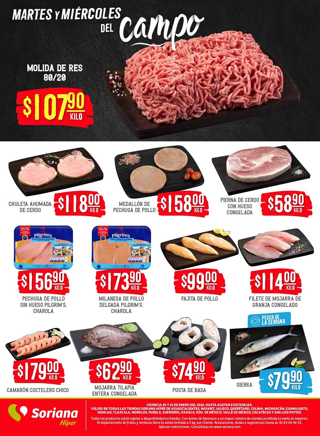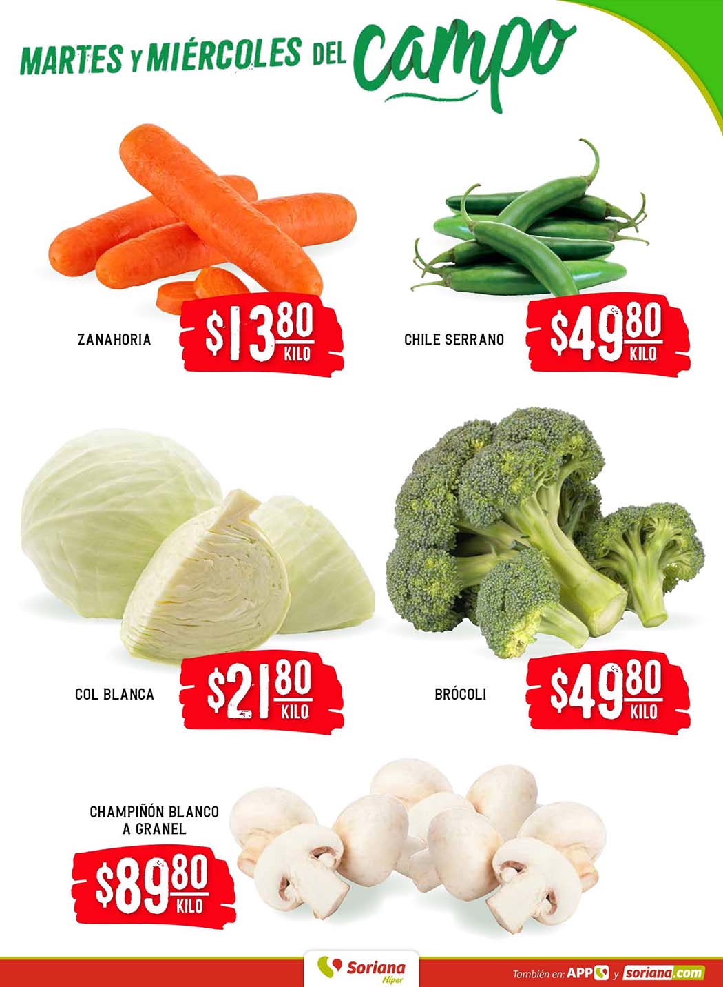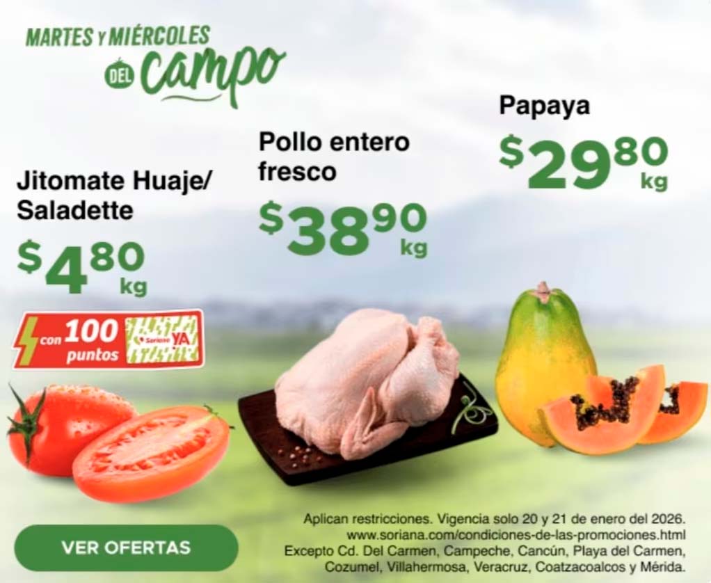 El Martes y Miércoles del Campo presenta las siguientes ofertas de frutas y verduras válidas los días 20 y 21 de enero 2026 que aplican en tiendas Soriana Híper participantes de la República Mexicana. Te comparto la lista de precios, para que compares y ahorres varios pesos por tus compras.