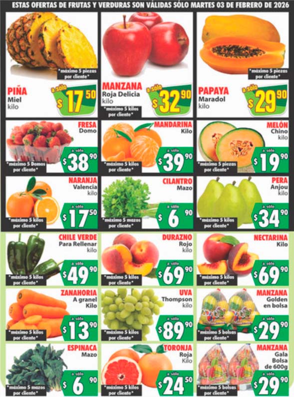Las tiendas Casa Ley dieron a conocer su Folleto ofertas de frutas y verduras válido los días Martes 3 y Miércoles 4 de febrero 2025, donde encontrarás precios bajos en productos seleccionados que aplican en sucursales participantes.