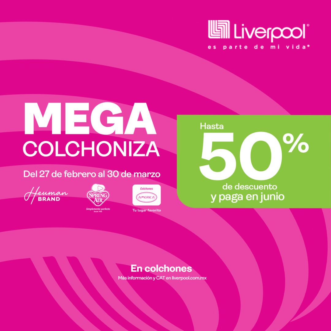 Las tiendas departamentales Liverpool tienen disponible la promoción Mega Colchoniza, en la que puedes aprovechar hasta un 50% de descuento en Colchones seleccionados y pagar en Junio 2026. Renueva tu colchón con esta super oferta.