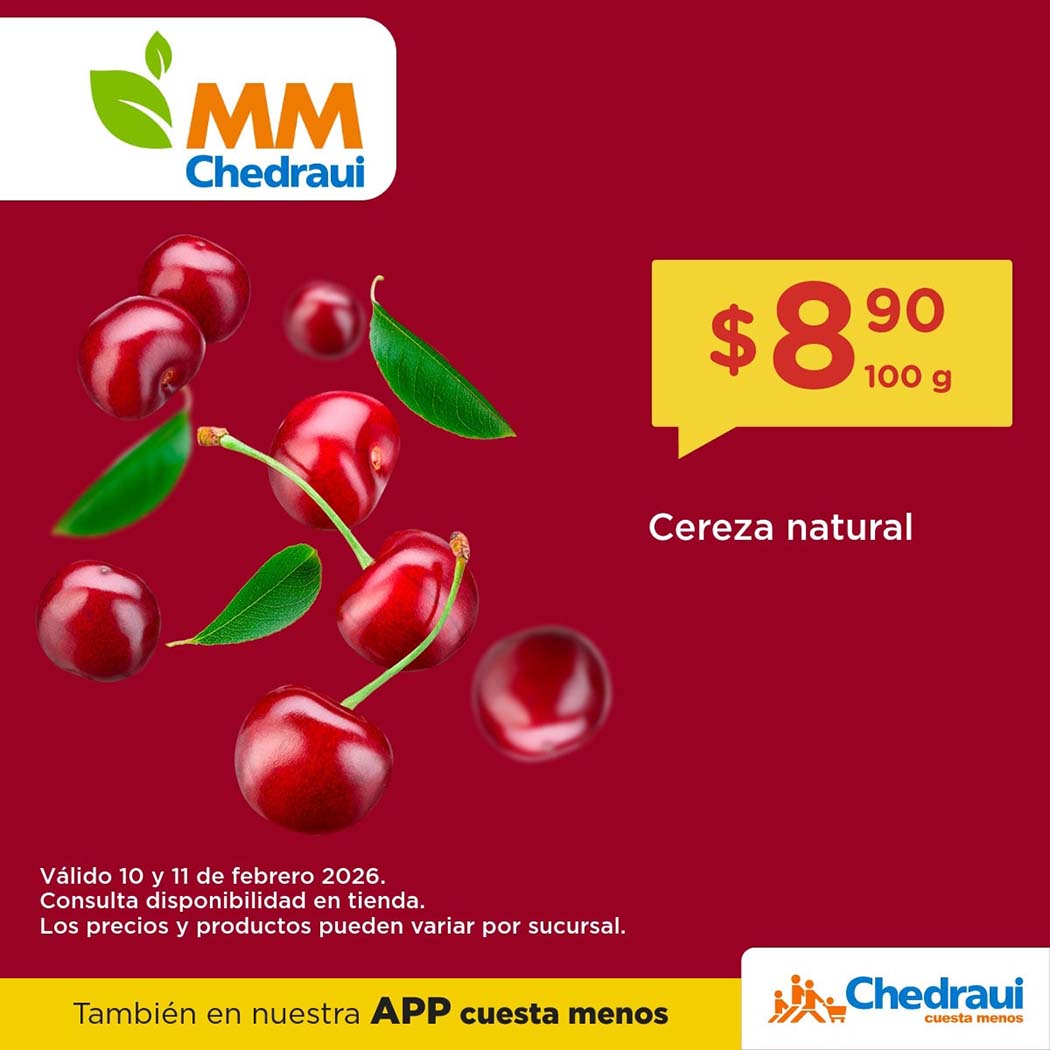 - Cereza natural a $8.90 los 100 g.