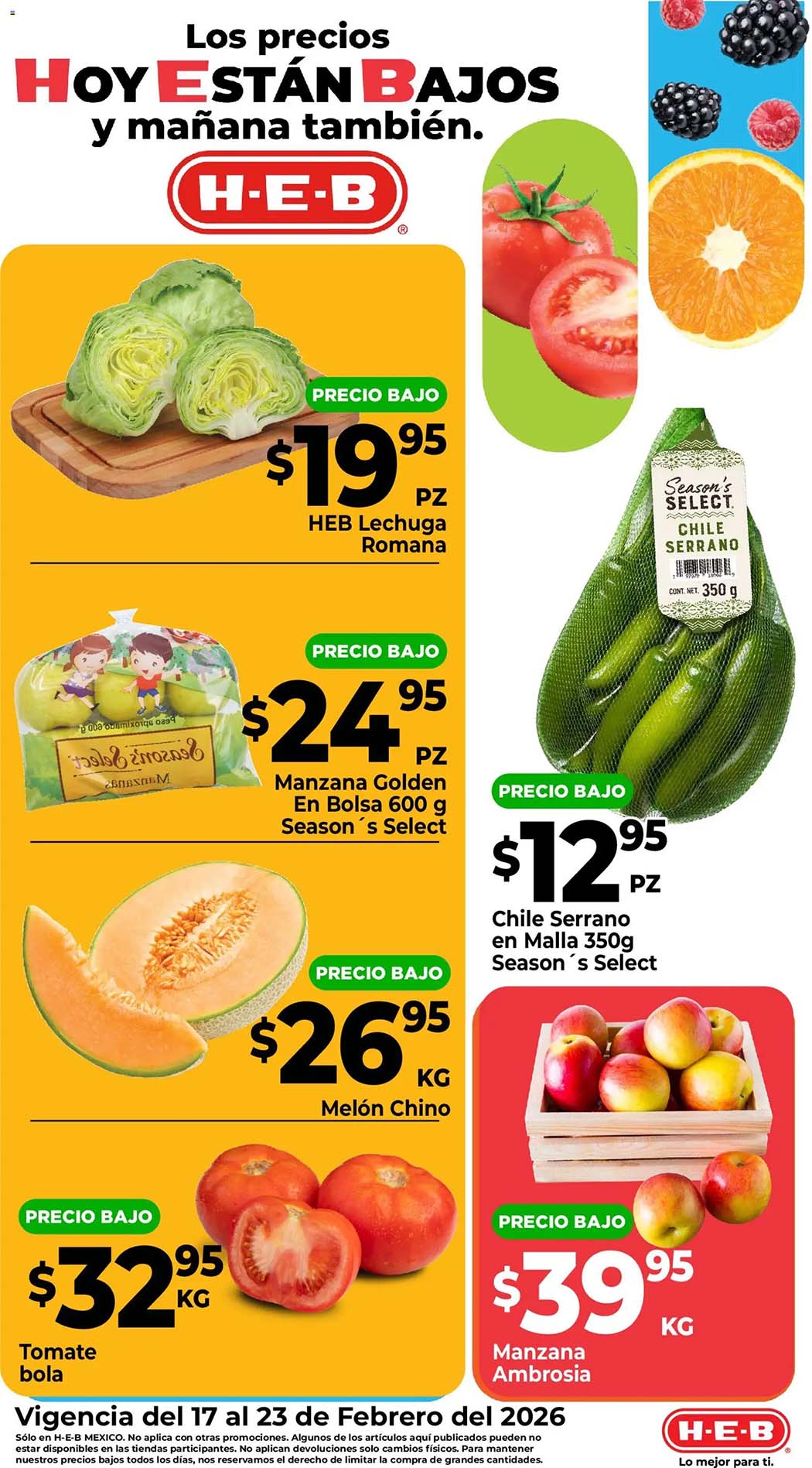 Ofertas HEB frutas y verduras del 17 al 23 de febrero 2026