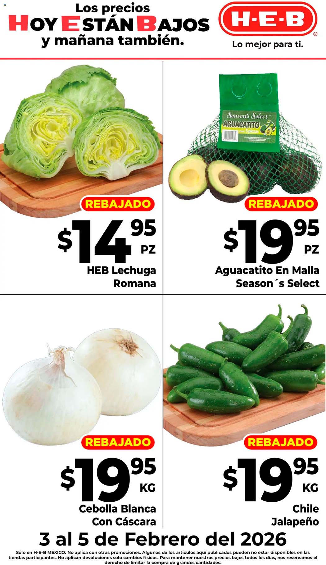 - Lechuga Romana a $14.95 la pieza (hasta el 05 de febrero)