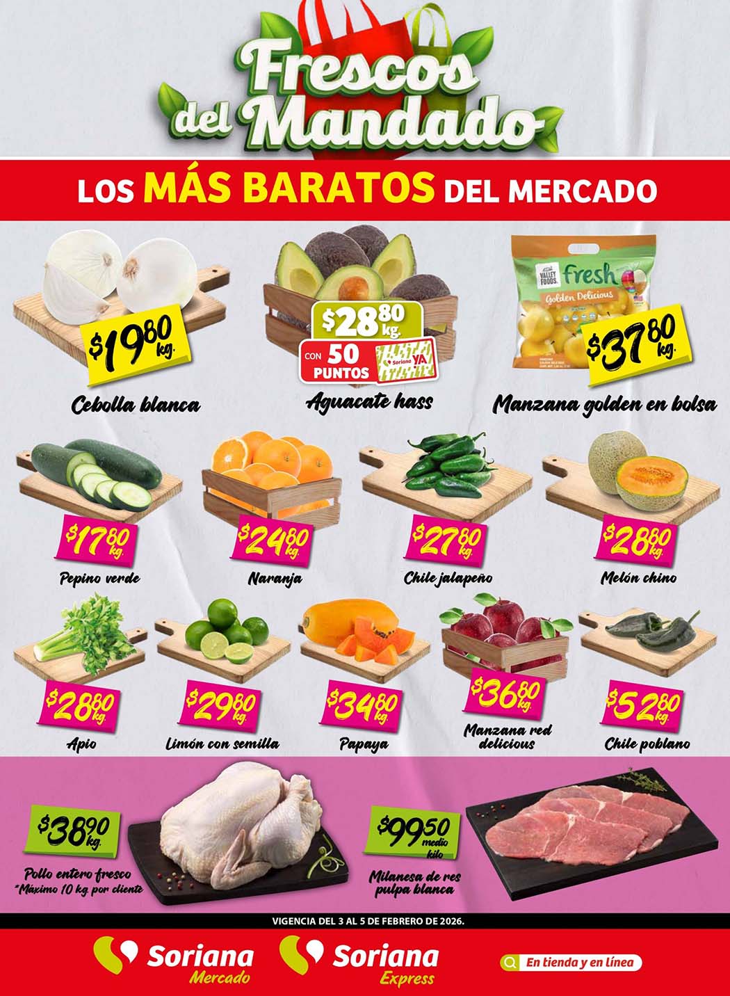 Ya salió el Folleto de Soriana Mercado y Express Los Frescos del Mandado, que contiene ofertas de frutas y verduras válidas del 3 al 5 febrero 2026, donde encontraras descuentos y precios especiales toda la semana.