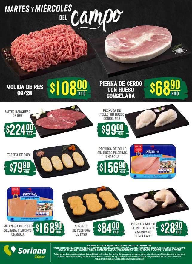 Folleto Soriana Súper Martes y Miércoles del Campo 10 y 11 de marzo 2026