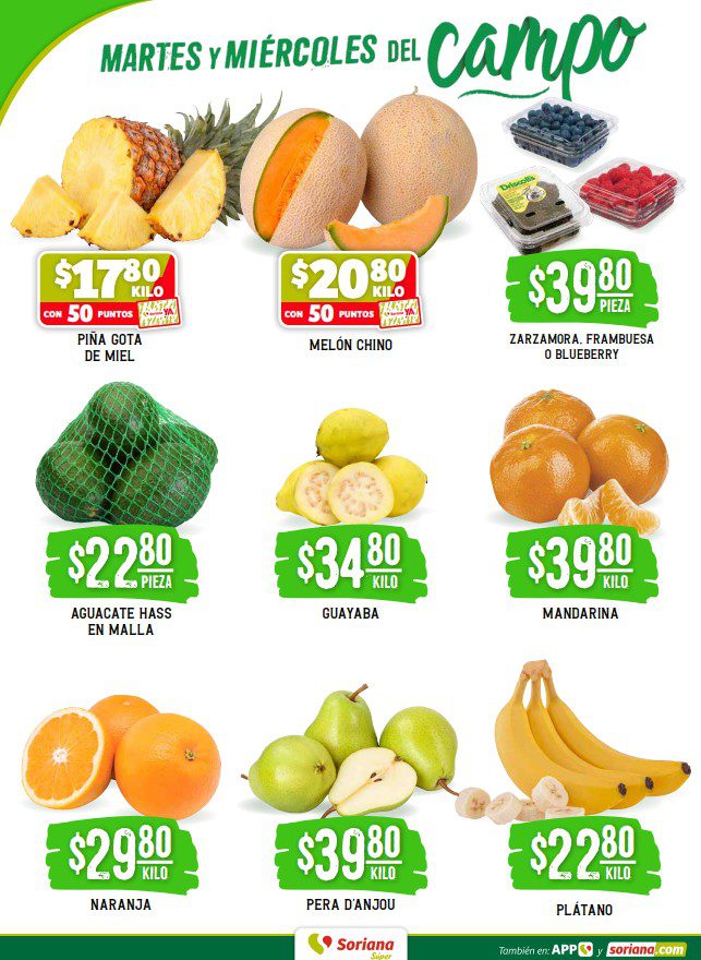 Ofertas del Folleto Soriana Súper frutas y verduras (Los precios pueden variar en cada tienda o por ciudad):