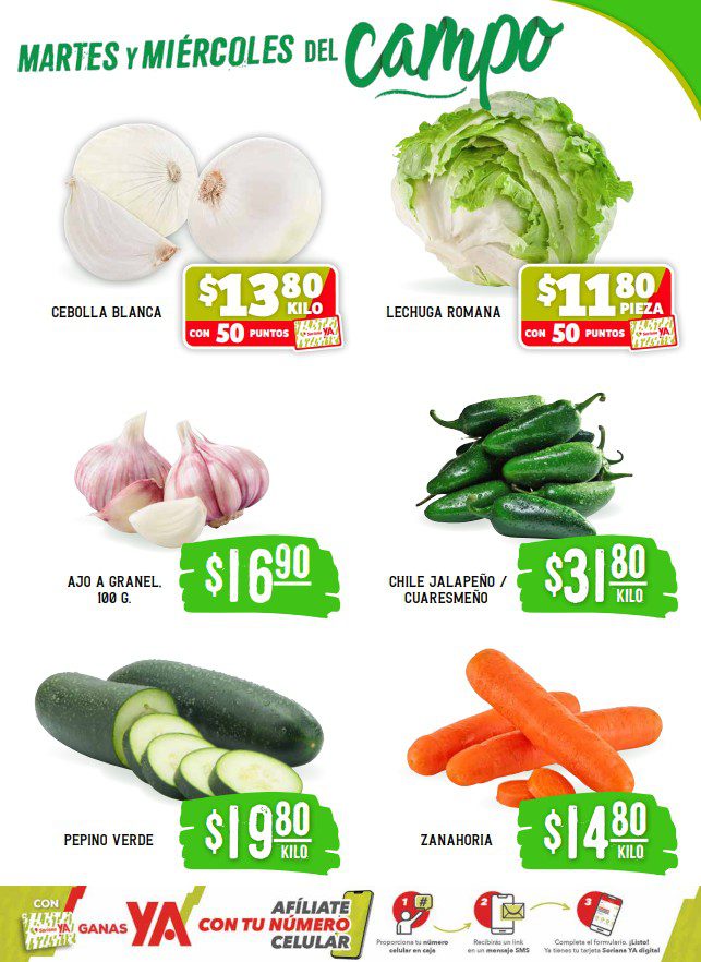 • Cebolla blanca a $13.80 el kilo con 50 Puntos Soriana Ya.