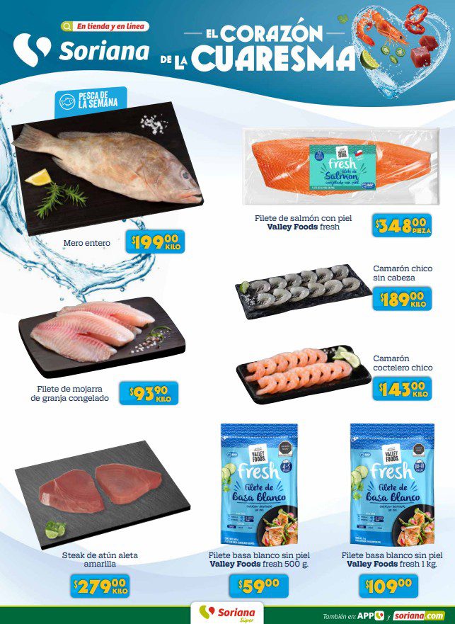 • Filete de Salmón con piel Valley Foods Fresh a $348.00 el empaque.