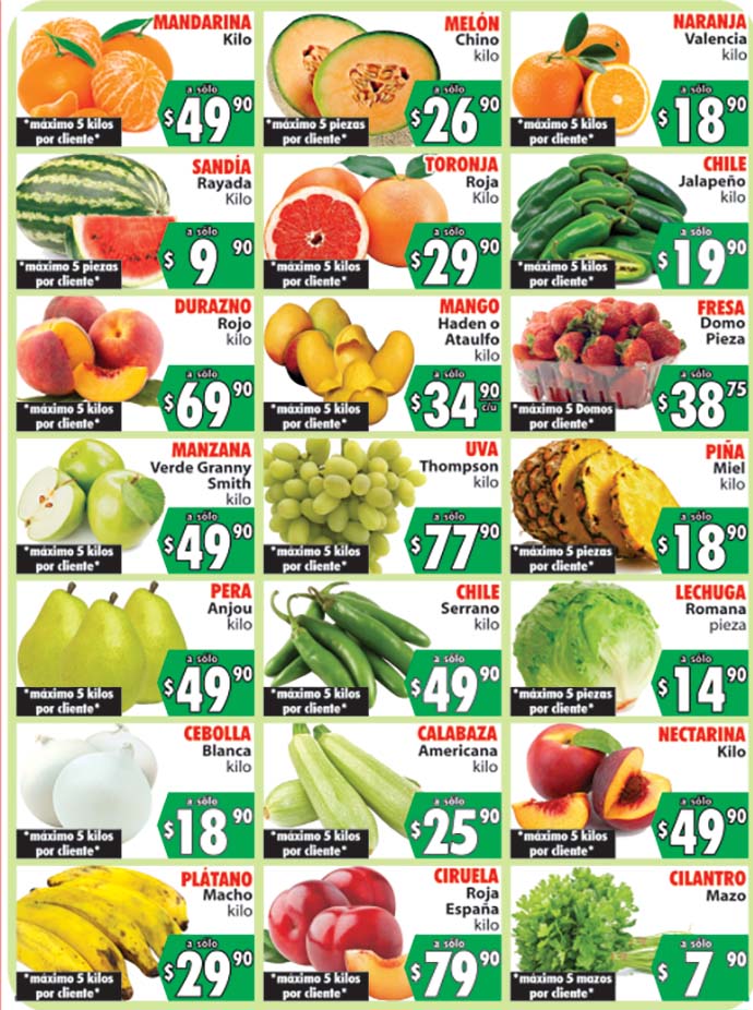 - Toronja a $29.90 el kilo.