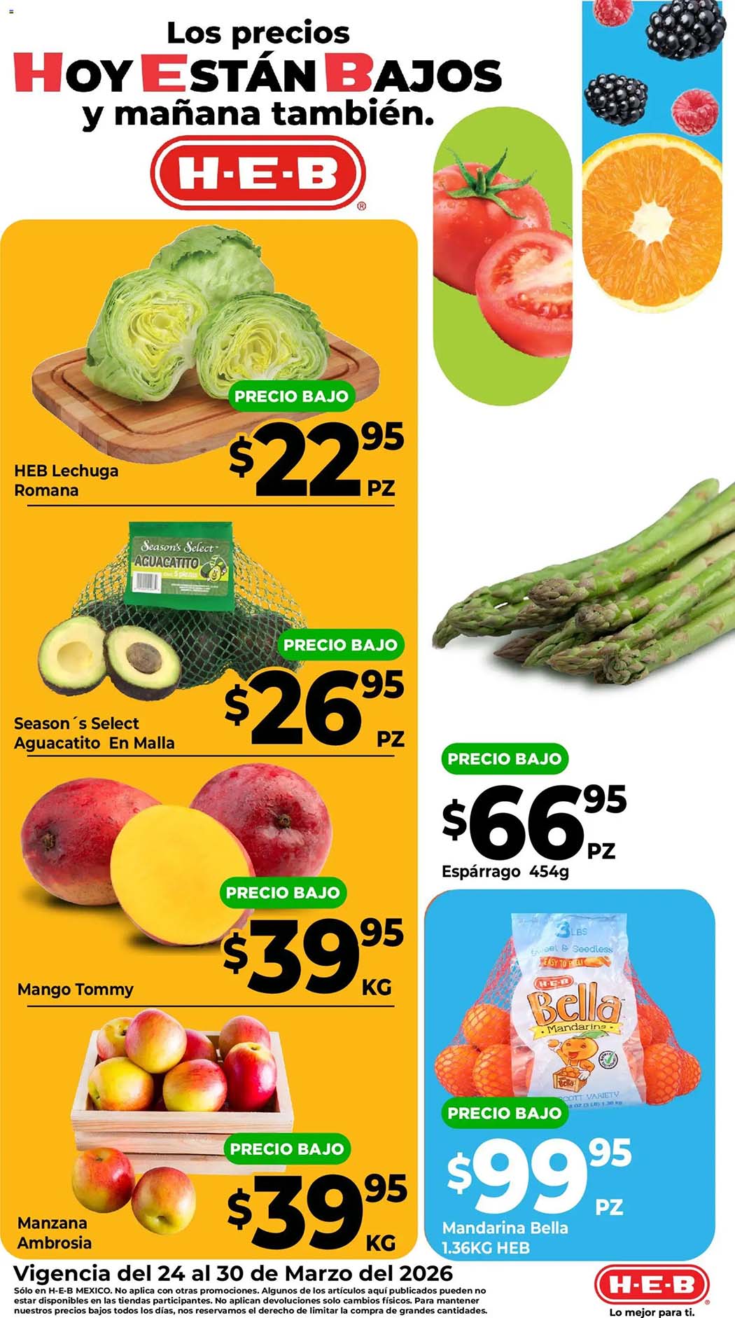 Las tiendas HEB dieron a conocer su folleto “7 Días de Precios Bajos”, que contiene ofertas en frutas y verduras válidas del 24 al 30 de marzo de 2026, en el que encontrarás precios especiales en sucursales participantes de la República Mexicana.