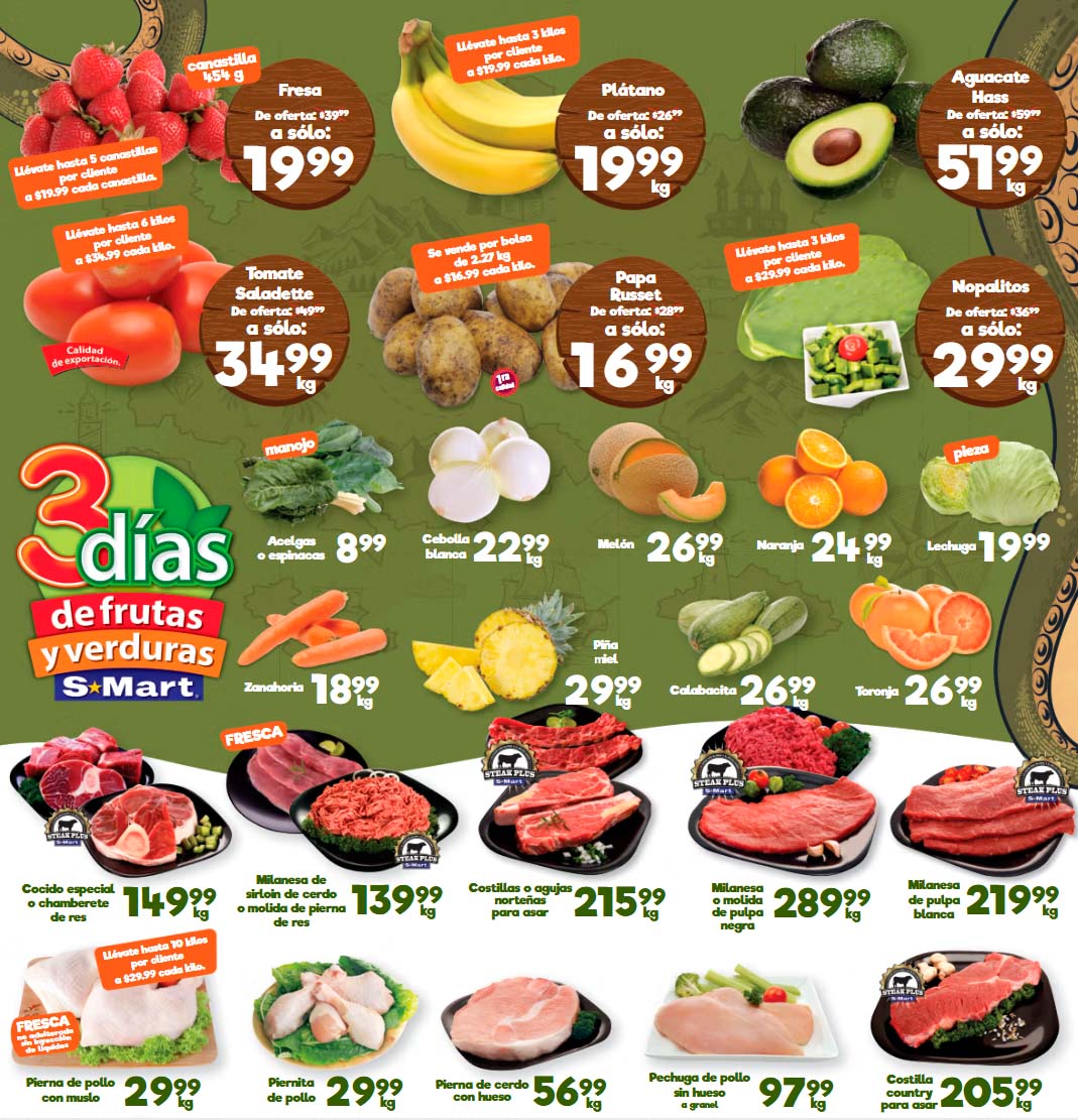 Ya está publicado el folleto de S-Mart “3 Días de Frutas y Verduras”, que contiene ofertas con precios especiales del 24 al 26 de marzo 2026, en el encontrarás precios especiales que puedes aprovechar para surtir tu despensa.